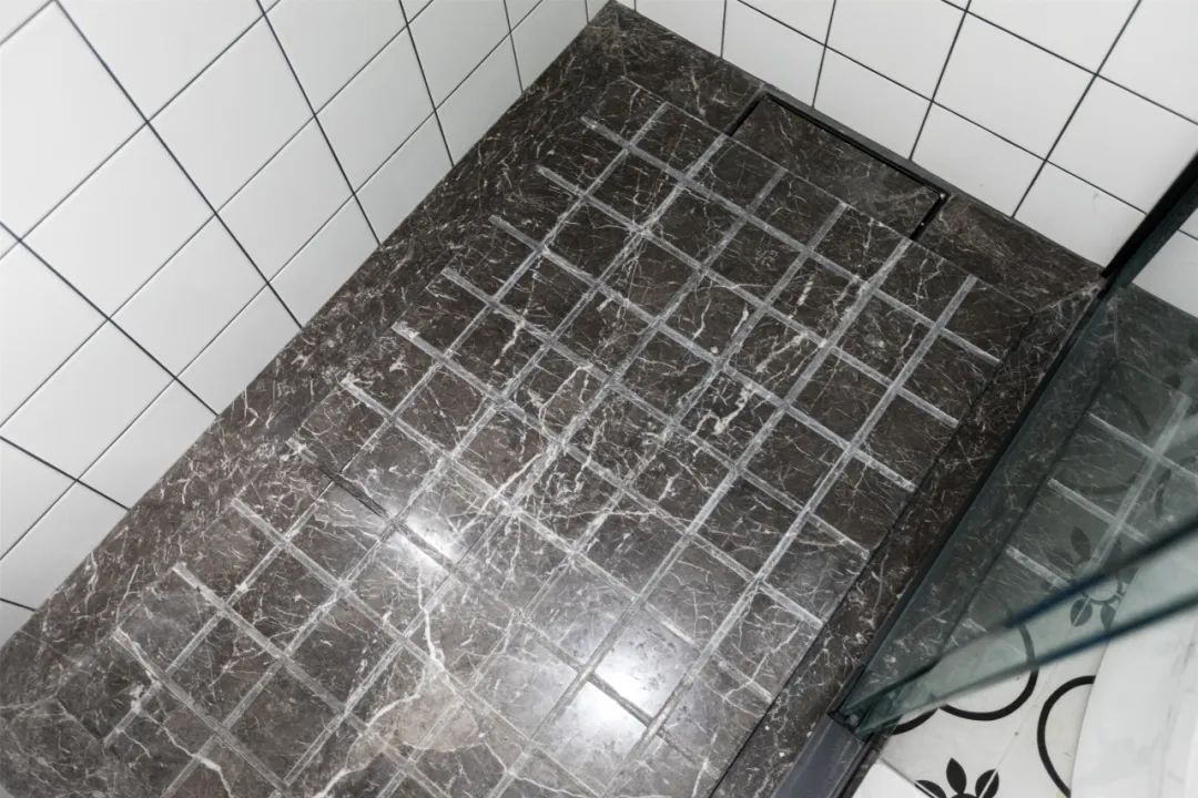 淋浴房内铺设防滑大理石地板,既实用又赋予空间雅致之感。